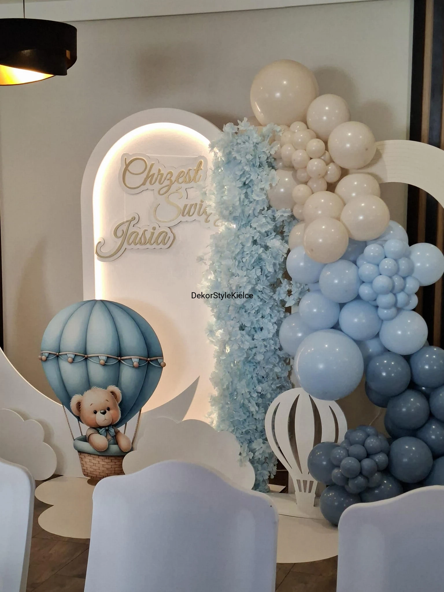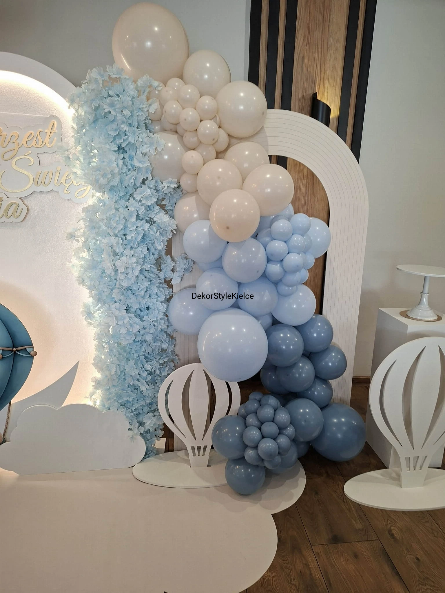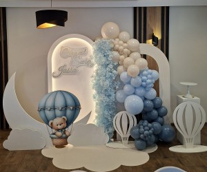 Wycena zależy od ilości stelaży, wielkości girlandy balonowej oraz dodatków takich jak napisy personalizowane,stojaki pod tort, grafiki, kwiaty,dekoracje stołów itp.