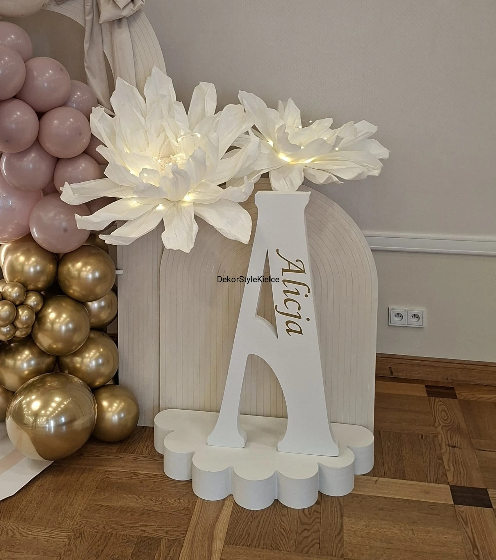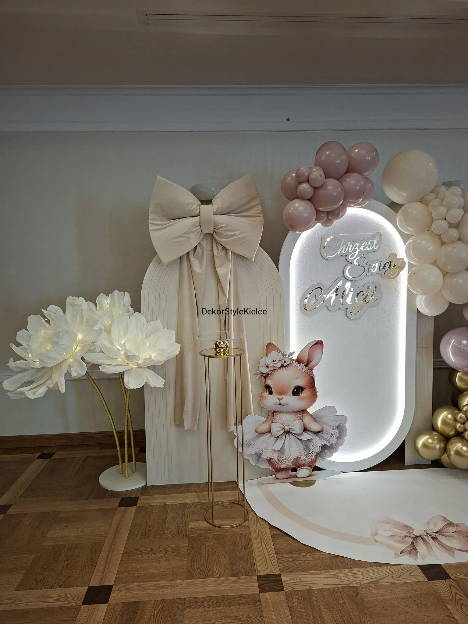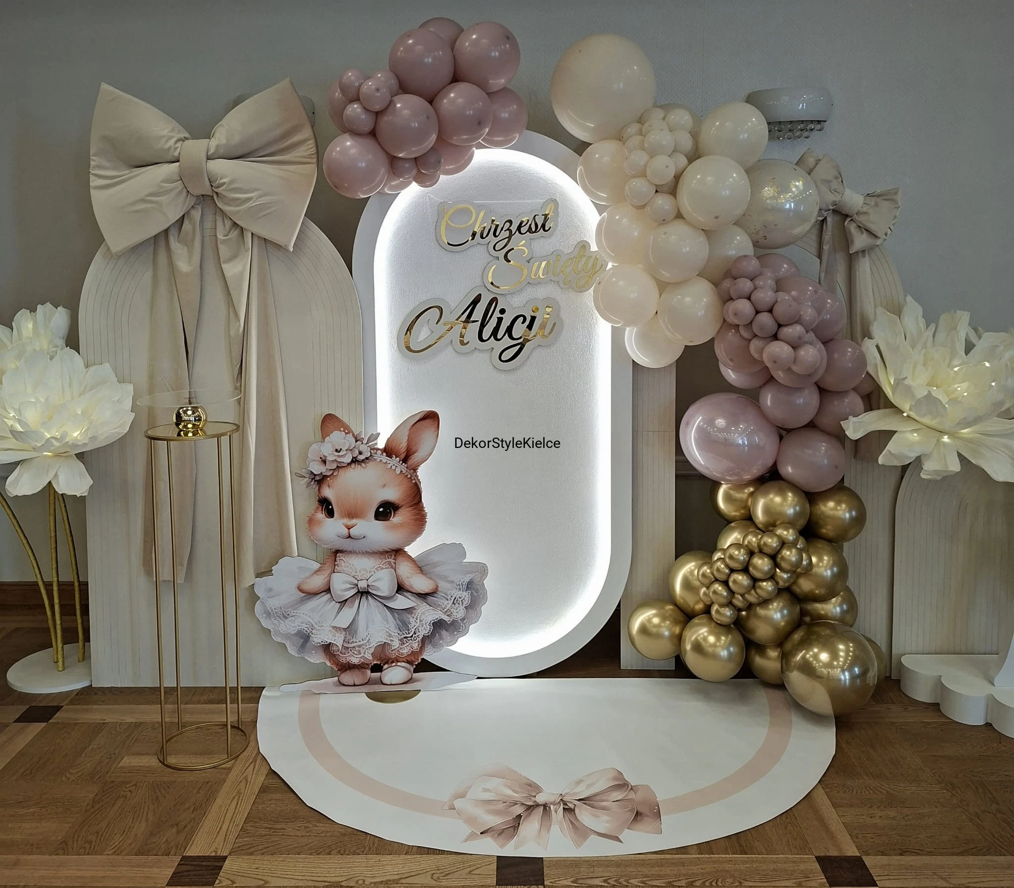 Wycena zależy od ilości stelaży, wielkości girlandy balonowej oraz dodatków takich jak napisy personalizowane,stojaki pod tort, grafiki, kwiaty,dekoracje stołów itp.
