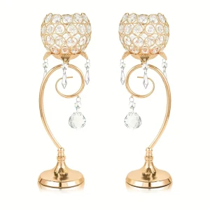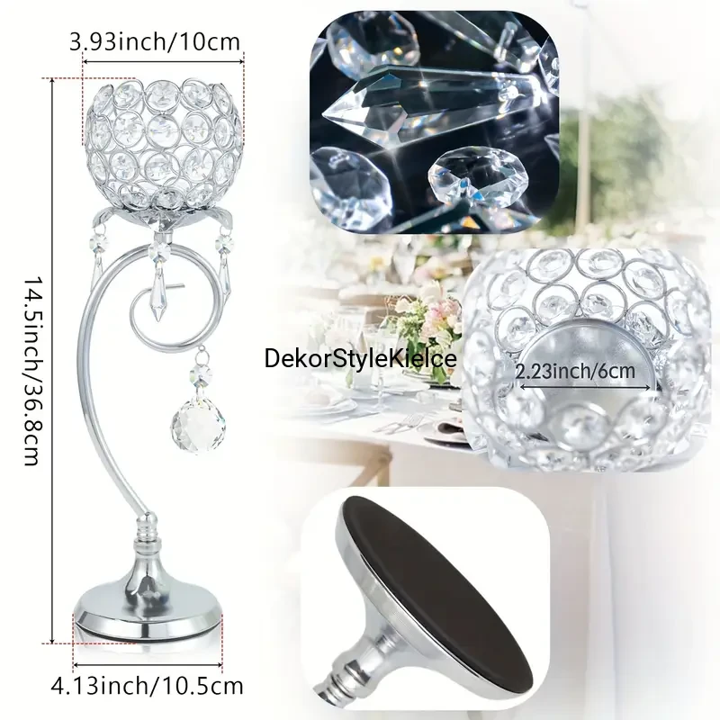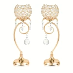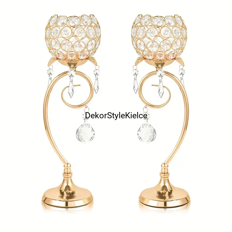 2SZT ŚWIECZNIK ZŁOTY Z KRYSZTAŁKAMI h-36cm